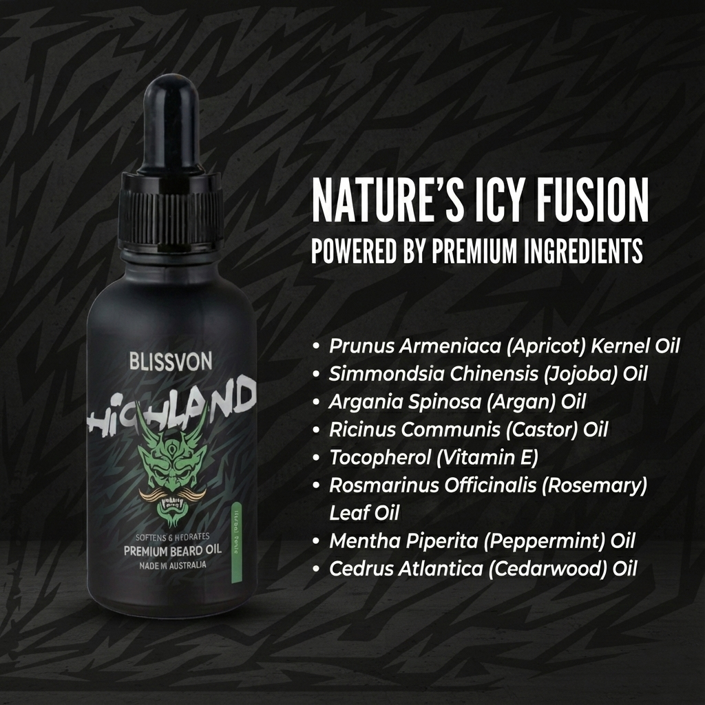Experience the rugged freshness of the Australian highlands with Blissvon HIGHLAND Premium Beard Oil. Expertly crafted in Australia, this herbal tonic blend combines Apricot, Jojoba, and Argan oils to deeply hydrate and soften your beard without feeling greasy. Infused with Rosemary, Peppermint, and Cedarwood, it delivers an invigorating scent while taming unruly facial hair. Perfect for daily grooming to maintain a healthy-looking, soft, and manageable beard.
